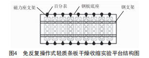 吳善才等人對3種干燥收縮檢測方法進行了對比實驗,結果表明,在檢測過程中,采用國家標準實驗法和手持應變儀測量法會干擾到實驗穩(wěn)定條件,產生人為實驗操作誤差,而新的實驗檢測方法從檢測樣品開始到結束無須移動實驗樣品,檢測儀器也一直未離開實驗樣品,因而其檢測的數據較為準確。因此,研究出一種免反復操作式實驗裝置尤為重要。