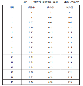 式中:s為試件干燥收縮值(mm/m):L1為試件初始長度(含收縮頭)(mm):L2為試件干燥后長度(mm):L為試件初始長度(不含收縮頭)(mm)。