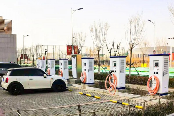 天津體育學(xué)院交直流充電樁,英威騰配備60kW雙槍式充電樁及7kW交流充電樁。