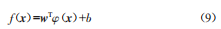 進(jìn)一步地,若以分類間隔最大為優(yōu)化目標(biāo),通過優(yōu)化算法得到w和b的估計(jì)值,這樣的分類器即為sVM線性分類器,其泛化能力優(yōu)于普通線性分類器。在sVM線性分類器的基礎(chǔ)上,可以使用變換函數(shù)將樣本的屬性向量從原始空間映射到更高維度的特征空間,使樣本最終具有線性可分性。引入變換函數(shù)φ(·)后,由式(8)定義的判決函數(shù)變?yōu)?