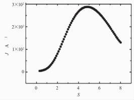 圖5250V時場發(fā)射電流密度(J)與陣列間距(S)關(guān)系圖