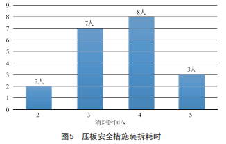 制作完成后,在變電管理所繼保班和外單位二次設(shè)備檢修人員中共隨機(jī)抽取了20人,進(jìn)行保護(hù)壓板安全措施布置與拆除的計(jì)時(shí)測(cè)試,結(jié)果如圖5所示。