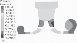 邊界條件:進口邊界條件為壓力進口,出口邊界條件采用質(zhì)量流量。選取額定轉(zhuǎn)速下的計算參數(shù),即進口溫度為45.2℃,出口溫度為117.9℃,進口壓力101325Pa(1atm),出口流量58m3/min。