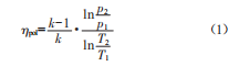 式中:k為等嫡指數(shù):p2為出口壓力:p1為進口壓力:T2為出口溫度:T1為進口溫度。