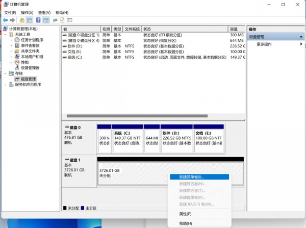 在電腦的計算機(jī)管理界面的磁盤管理,進(jìn)行初始化剛剛新加的硬盤。