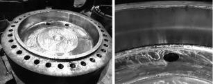 AGC伺服油缸的失效模式主要有桿封損壞、活塞桿鍍層磨損、活塞封損壞、缸筒開裂,其中以缸筒開裂后果最為嚴重,開裂部位主要在缸筒與缸底接合的圓角處。圖2所示為國內(nèi)某鋼廠4300寬厚板粗軋機上的AGC伺服油缸缸筒失效照片。這種疲勞裂紋會最先出現(xiàn)在圓角表面,然后逐漸延展到材料內(nèi)部,最終導致從裂紋處漏油。因此,在設計階段對圓角處進行受力分析及疲勞計算顯得尤為重要。