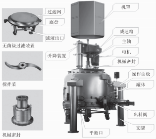 在制藥行業(yè),藥品在結(jié)晶釜內(nèi)結(jié)成懸浮液,用離心機(jī)進(jìn)行固體和液體的分離,得到濾餅,然后進(jìn)入洗滌罐進(jìn)行清洗,再進(jìn)入單錐干燥機(jī)或烘箱進(jìn)行干燥。物料需要通過幾個(gè)設(shè)備,在物料轉(zhuǎn)換過程中無法完全密封,為解決這一難題,近年研發(fā)的過濾洗滌干燥三合一設(shè)備(下文簡(jiǎn)稱"三合一設(shè)備")集晶體的固液分離、洗滌過濾和低溫真空干燥功能于一體,在一個(gè)密封的容器內(nèi)完成上述工藝操作,從而有效地防止了人為污染,保證了藥品內(nèi)在質(zhì)量。這種新的三合一設(shè)備具有操作過程簡(jiǎn)便密封、物料轉(zhuǎn)換方便、生產(chǎn)效率高、產(chǎn)品質(zhì)量好等特點(diǎn),因此已逐漸為原料藥生產(chǎn)廠所采用。