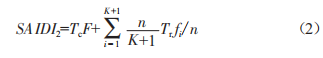 在全部安裝"二遙"的10kV架空配電網(wǎng)絡(luò)中,故障處理時(shí)間可表示為式(1),假設(shè)分段線路每段的故障率為/i,由于各分段故障概率相同,所以系統(tǒng)用戶平均故障停電時(shí)間SAIDI2可表示為: