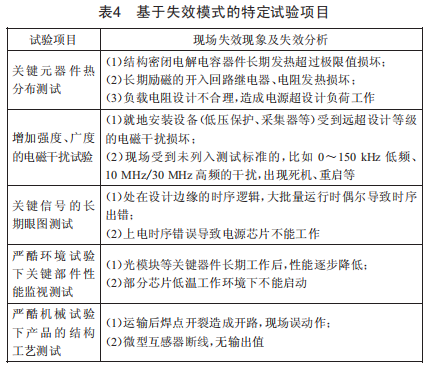 通過收集整理現(xiàn)場(chǎng)問題進(jìn)行失效分析,總結(jié)故障模式,開展具有針對(duì)性的可靠性試驗(yàn)項(xiàng)目。相關(guān)試驗(yàn)項(xiàng)目如表4所示。