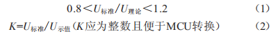 RN8302B芯片支持功率校準(zhǔn)模式,利用標(biāo)準(zhǔn)源輸出三相電壓和電流,計(jì)算有效值的理論值與儀表的示值進(jìn)行對(duì)比,假設(shè)電壓額定輸入U(xiǎn)n時(shí),芯片電壓通道輸入端電壓有效值為Vu,理論計(jì)算值為U理論,經(jīng)MCU轉(zhuǎn)換LCD顯示值為U示值,標(biāo)準(zhǔn)的電壓有效值寄存器值為U標(biāo)準(zhǔn),則U標(biāo)準(zhǔn)選擇應(yīng)滿足下列條件: