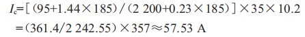 電纜導(dǎo)線截面積為185mm2,電壓等級(jí)為35kV,電纜長(zhǎng)度為10.2km。根據(jù)公式(1),可知該電纜對(duì)地電容電流為: