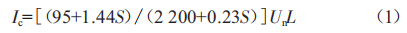 式中:1c為線路對(duì)地電容電流(A);s為電纜導(dǎo)線截面積(mm2);Un為額定線電壓(kV);L為線路長(zhǎng)度(km)。