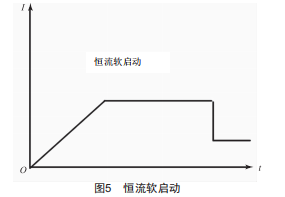 如圖5所示,異步電動(dòng)機(jī)啟動(dòng)時(shí),啟動(dòng)電流以一定斜率緩慢上升至額定電壓,后維持恒定至停機(jī),適用范圍較廣。