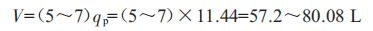 本試驗(yàn)臺試驗(yàn)時壓力一般小于等于6.3MPa,并根據(jù)qp=11.44L/min,計(jì)算油箱的有效容積得:
