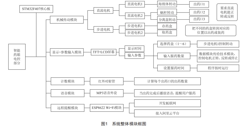 目前主要有兩類(lèi)智能藥箱:一類(lèi)是家用藥箱,此種藥箱的體型較大,主要有自動(dòng)配藥、提醒吃藥的功能,并可以通過(guò)手機(jī)與互聯(lián)網(wǎng)數(shù)據(jù)同步:另一類(lèi)是戶(hù)外藥箱,此類(lèi)藥箱較為輕便、易攜帶,但功能太單一,只有報(bào)時(shí)功能。多數(shù)藥箱只是方便取藥,功能較單一,而老人吃藥的時(shí)間也不長(zhǎng),如果僅僅把其當(dāng)作藥箱也是一種負(fù)擔(dān)。因此,本文設(shè)計(jì)了一款新型智能藥箱,它能夠?qū)崿F(xiàn)按時(shí)、按量提醒需要服藥的人員去服用藥物的功能,并且監(jiān)護(hù)人可以通過(guò)手機(jī)端查看服藥情況。如果沒(méi)有按時(shí)服藥,監(jiān)護(hù)人可以遠(yuǎn)程提醒,這樣可以避免因忘記服用藥物而發(fā)生意外情況。