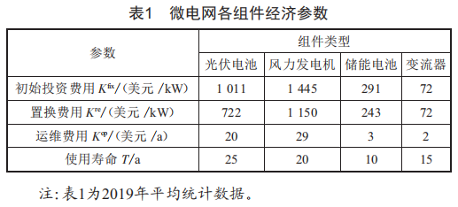 微電網(wǎng)組件的容量?jī)?yōu)化配置需要根據(jù)所在地的地理位置、氣象條件、電網(wǎng)資料等來(lái)確定各組件類型、功率和容量等參數(shù)。本文主要從經(jīng)濟(jì)性考慮,相關(guān)經(jīng)濟(jì)參數(shù)設(shè)置