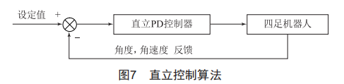 由圖3可以看出,該機器人結(jié)構相對簡單,每條腿配有2臺電機,分別控制腿部的前半部和后半部,共配有8臺電機,其與4條機械腿以及上下2塊金屬蓋板共同組成了該四足機器人。