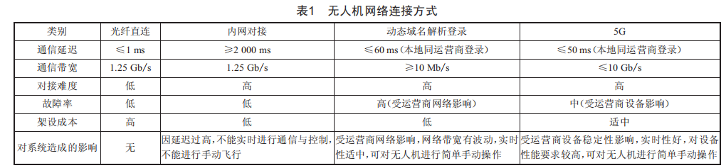 無(wú)人機(jī)智能航空站可提供多種網(wǎng)絡(luò)連接模式,通過(guò)輔助網(wǎng)絡(luò)與通信子系統(tǒng)提供多種管理方式、自由選擇。無(wú)人機(jī)具體各連接方式情況如表1所示。