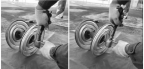 在10kV線路的建設和維護過程中,懸式絕緣子間的連接或與金具的連接都是通過一個卡簧來限位防止元件間的脫落,但現(xiàn)在沒有特定的工器具實現(xiàn)卡簧的有效拆裝,目前的拆裝操作可謂"五花八門",作業(yè)人員大多采取鋼絲鉗扯拔或扳手拷打等方法(圖1),不但費時,還會對碗頭掛環(huán)和卡簧造成損壞,如用力不當還會造成瓷瓶破裂或卡簧丟失。特別是在高處作業(yè),嚴重時使用拷打方法會造成絕緣子爆裂,不但影響施工時的工作效率,而且卡簧受拷打扯拔后有變形的可能,這就給設備帶來了一定的安全隱患。為使絕緣子鎖緊銷可以輕松順利拔出,本項目研制了一種易操作、安全性高的新型絕緣子卡簧拆裝工具,取得了良好的應用效果。
