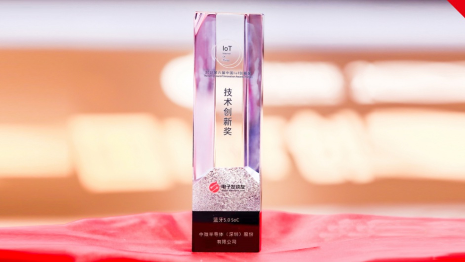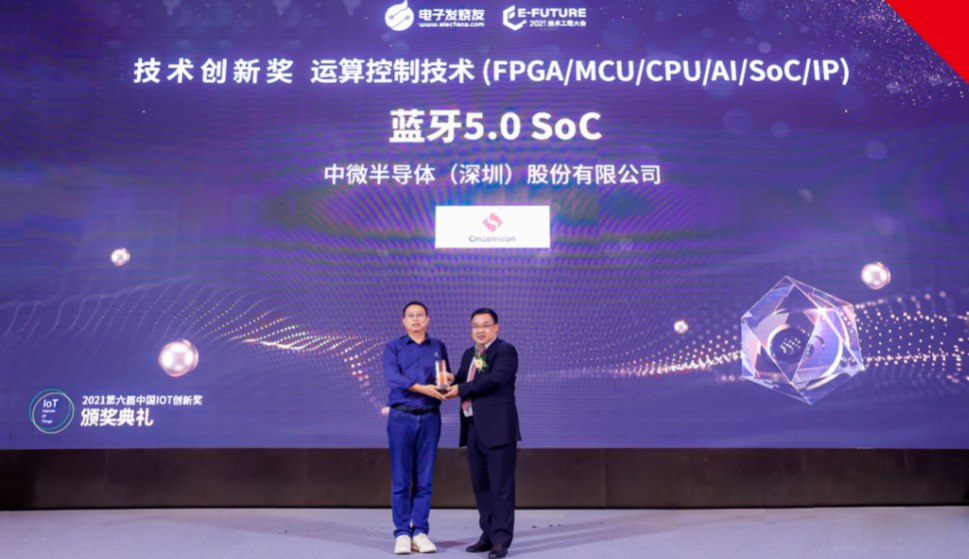 【榮譽(yù)】中微半導(dǎo)藍(lán)牙5.0 SoC喜獲“2021中國(guó) IoT技術(shù)創(chuàng)新獎(jiǎng)”