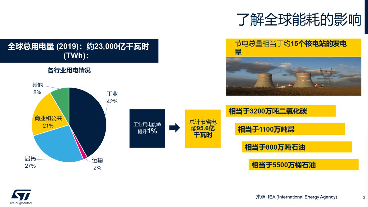 從2019年的用電比例來看,工業(yè)是用電量大頭。全球工業(yè)用電效率提高1%,則可節(jié)約出約15個核電站的發(fā)電量。從電能產生、到電能輸送、存儲到最終使用,如何從整個電力轉換鏈上進行提高能源利用效率,增加可再生能源使用率是整個行業(yè)關注的熱點話題。而諸如SiC和GaN這類寬禁帶器件因為其天然的特性,相比傳統(tǒng)的硅器件有著更好的效能。
