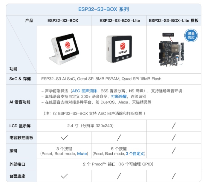 ESP32-S3-BOX 系列產(chǎn)品功能對(duì)比