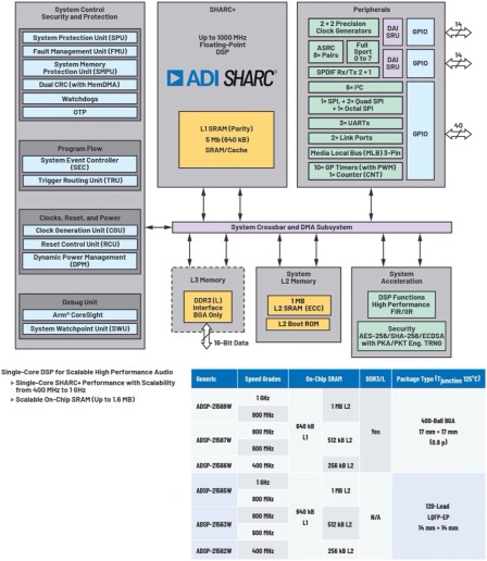圖2. ADSP-2156x DSP,高度可擴(kuò)展的音頻處理器