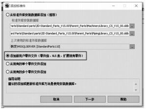 零件族文件可以通過(guò)標(biāo)準(zhǔn)件庫(kù)管理器添加至標(biāo)準(zhǔn)件庫(kù)中,建立屬于公司自己的標(biāo)準(zhǔn)件庫(kù)。在so1i4E4ge內(nèi)置的標(biāo)準(zhǔn)件庫(kù)管理器中,開放了從零件族文件添加標(biāo)準(zhǔn)件的方法,如圖6所示。