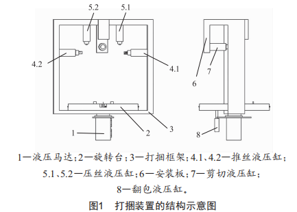 為提高生產效率及操作的安全性,降低人工成本,要求所設計的液壓打捆裝置無須人工干預即可完成自動打捆功能,且設備噪聲低,能耗小,自動化程度高。