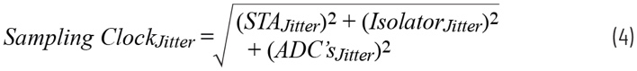 現(xiàn)在,根據(jù)ADC和隔離器的抖動(dòng)規(guī)格,我們可以使用以下公式計(jì)算總rms抖動(dòng):