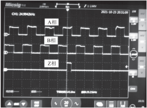 采用四橫電機sH660系列220V/400w交流伺服驅(qū)動器作為實驗平臺(圖7)來驗證本文所提分頻輸出方法。伺服電機安裝17位多圈絕對式編碼器,額定轉(zhuǎn)速3000r/min,設(shè)置分頻輸出4倍頻后分辨率為10000。分頻正交脈沖由MicsigsTo1104C示波器采樣,脈沖計數(shù)由J-scope采樣并顯示。實驗操作使用四橫電機公司的伺服系統(tǒng)調(diào)試軟件shMotion,利用調(diào)試軟件位置點動功能,設(shè)定點動脈沖數(shù)位20000,單圈脈沖數(shù)10000,最高速度設(shè)定為600r/min。調(diào)試軟件啟動位置點動功能后,伺服電機以設(shè)定速度先反向運轉(zhuǎn)720°再正向運轉(zhuǎn)720°,用示波器和J-scope同時采集分頻輸出脈沖,對設(shè)計方法進行驗證。