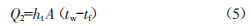 式中:02為對流換熱量:ht為對流換熱系數(shù):A為壁面的有效對流換熱面積:1w為固體表面的溫度:1f為冷卻流體的溫度。