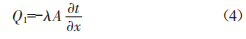 式中:01為傳導(dǎo)熱流量:A為材料導(dǎo)熱系數(shù),負號表示熱量傳遞的方向與溫度梯度相反:A為垂直于導(dǎo)熱方向的