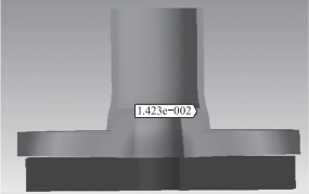 如圖13所示,特殊不銹鋼由于其自身的熱膨脹系數(shù)較低,在加熱溫度為180℃條件下機殼與工裝裝配結(jié)合處的最大變形量為0.01423mm,符合設(shè)計需要。