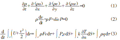 式中·p為流體密度﹔p為單位體積上的慣性﹔pF為單位體積上的質(zhì)量力﹔divP為單位體積上應(yīng)力張量的散度:∫τρqdτ表示單位時間內(nèi)由于輻射或其他原因傳入p內(nèi)的總熱量。