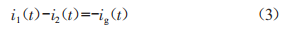 圖6(c)是負(fù)半周期的反向充電模態(tài),s2開通,s1、s4關(guān)斷,前級功率通過反向的并網(wǎng)電流向網(wǎng)側(cè)傳遞能量。該狀態(tài)與圖6(a)類似,續(xù)流管s3、s4不流經(jīng)電流,依據(jù)中點0的KC1定律,并網(wǎng)電流注入中點,得到: