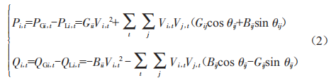 式中,PGi,1,0Gi,1為DG在時段1節(jié)點i的有功功率:PLi,1,0Li,1為時段1節(jié)點i的負(fù)荷需求:vi,1為時段1節(jié)點i的電壓水平:cij、Bij、9ij為系統(tǒng)拓?fù)鋮?shù)。