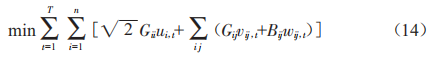 式中,7為優(yōu)化時段總數(shù):n為系統(tǒng)中節(jié)點數(shù)量:Pi,1為節(jié)點i在1時段注入的有功功率。