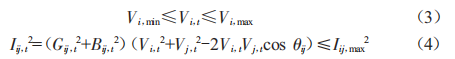 式中,vi,min、vi,max為節(jié)點i的電壓幅值:Iij,,1為時段1線路ij通過的電流幅值:Iij,max為線路ij的最大允許通過電流幅值。