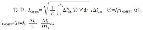 式中,RCinESR為輸入電容ESR:Ii為輸入電流有效值:AIL為電感0≤t≤D7sD7s≤t≤7s電流紋波:D為開(kāi)關(guān)管導(dǎo)通占空比。