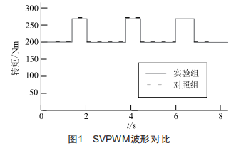 根據(jù)上述實(shí)驗(yàn)方法進(jìn)行實(shí)驗(yàn),兩組實(shí)驗(yàn)SVPWM波形對(duì)比如圖1所示。