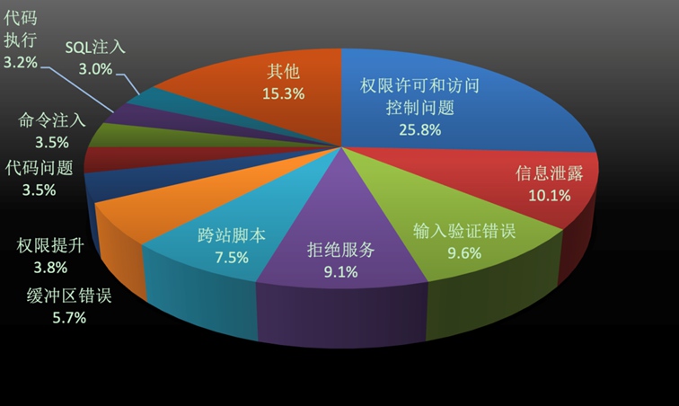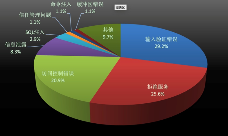 從漏洞類(lèi)型分布上來(lái)看,主要集中在輸入驗(yàn)證錯(cuò)誤、拒絕服務(wù)、訪問(wèn)控制錯(cuò)誤三種類(lèi)型,占據(jù)全部漏洞類(lèi)型的75.7%,