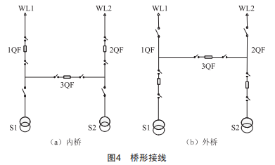 橋形接線分為內(nèi)橋接線和外橋接線兩種形式,如圖4所示。