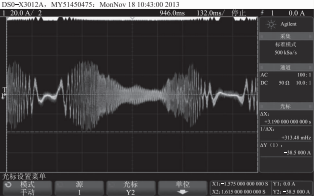 仿真結(jié)果(圖2)最大為轉(zhuǎn)矩為1268N·m,根據(jù)傳動(dòng)效率與模型簡(jiǎn)化誤差,取65%傳動(dòng)效率,除以105傳動(dòng)比,則電機(jī)所需輸出轉(zhuǎn)矩為18.6N·m。實(shí)驗(yàn)測(cè)試結(jié)果(圖3)顯示啟動(dòng)時(shí)最大電流為27.23A,電機(jī)額定電流為11.2A,額定轉(zhuǎn)矩為8N·m,則此時(shí)電機(jī)輸出最大轉(zhuǎn)矩約為27.23/11.2×8=19.45N·m,低于電機(jī)最大轉(zhuǎn)矩24N·m。