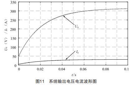 圖11為系統(tǒng)輸出電壓電流波形圖,從圖中可看出電流電壓紋波較小。