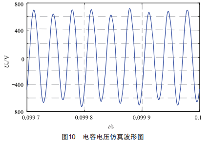 圖10為系統(tǒng)電容電壓波形,電容兩端電壓大小合理,驗證了參數(shù)設計的合理性。