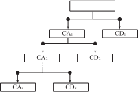 離散小波就是將小波母函數(shù)在時(shí)間尺度和縮放尺度上進(jìn)行二進(jìn)制處理,是一種可變頻率形狀的局部信號處理方法。小波分解過程如圖4所示。