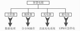 相較于傳統(tǒng)電箱,智慧電箱設(shè)計(jì)增加了主控器、操縱器、充電器和蓄電池4個(gè)功能模塊,以實(shí)現(xiàn)在斷電、跳閘等特殊情況下的遠(yuǎn)程監(jiān)控,如圖2所示。