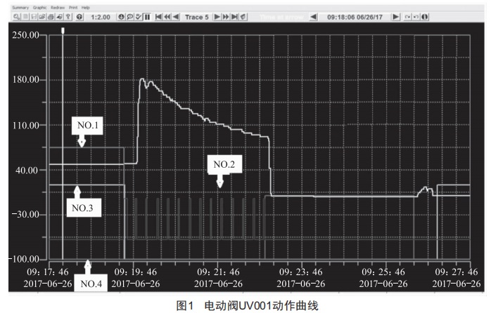 從系統(tǒng)閥門的動作順序以及邏輯分析可得知:系統(tǒng)閥門動作是按照原設(shè)定程序正常進(jìn)行的,控制邏輯也是正常作用。如圖1所示,09:19:33,N0.1線為切換指令(主蒸汽切換為輔助蒸汽),DCs隨即對輔汽電動截止閥UV002發(fā)出開指令N0.2線,此時UV002為關(guān)閉狀態(tài),接到命令后該閥門動作開啟。09:19:34,關(guān)到位反饋開關(guān)N0.3線脫扣動作,閥門往開方向動作。09:22:54,開到位反饋開關(guān)N0.4動作,閥門全開。當(dāng)主汽參數(shù)降至5.5MPa(55bar)以下時,輔汽開啟且全開成功,在主汽和輔汽同時并列供汽的情況下,軸封壓力調(diào)節(jié)滿足要求。在正常的控制邏輯作用下,由于主汽電動門開始快速關(guān)閉,主汽供軸封的汽源瞬間切斷,而輔汽供軸封的調(diào)門跟隨能力滯后于電動門,主汽參數(shù)比輔助蒸汽高,主汽電動門關(guān)閉的影響所占比重相對較大。同時,在主蒸汽參數(shù)不斷下降的情況下,本體自封的能力不斷下降,軸封減溫水閥門處于全開狀態(tài),導(dǎo)致了主汽供軸封汽源切斷后軸封壓力瞬間失去,在短時間內(nèi)不能建立,真空快速下降,最終導(dǎo)致機(jī)組真空高跳閘。
