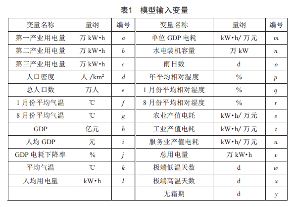 單純以歷史用電量信息作為前向預(yù)測的依據(jù),在模型迭代過程中其依賴的信息較少,可能會損失局部預(yù)測的細(xì)節(jié)信息,進(jìn)而影響模型精度。而采用多元協(xié)變量為輸入變量,以不同維度因子的變化特征描述用電量的時序變化趨勢,既能夠保證模型預(yù)測所需要的豐富的特征信息,還能夠確保模型穩(wěn)定性。結(jié)合前人的研究經(jīng)驗,從經(jīng)濟(jì)發(fā)展、人口、社會需求、自然環(huán)境等方面考慮,給出了相關(guān)的備選變量,如表1所示。
